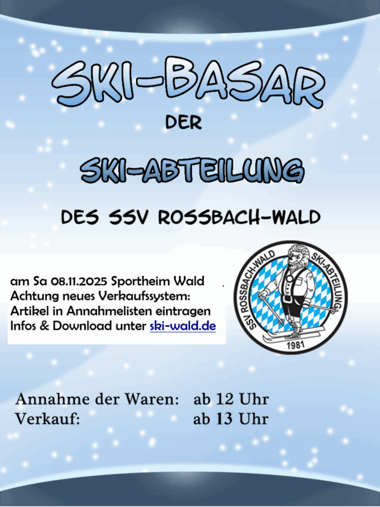 Ein herzliches Willkommen bei der Skiabteilung SSV Roßbach Wald. Wir von der Skiabteilung möchten es Jung und Alt ermöglichen, das Skifahren und Snowboarden zu erlernen und natürlich auch aktiv auszuüben. Wir bieten den Skifans aus Wald und Umgebung in den Wintermonaten Skikurse und Snowboardkurse für alle Altersgruppen, Ski Tagesfahrten und Wochenendausflüge in die Alpen oder auch Flutlichtfahrten in den Bayerischen Wald. Auch im Sommer bieten wir mit Nordic-Walking in zwei Leistungsgruppen oder unseren beliebten Radtouren die Möglichkeit sich sportlich zu betätigen